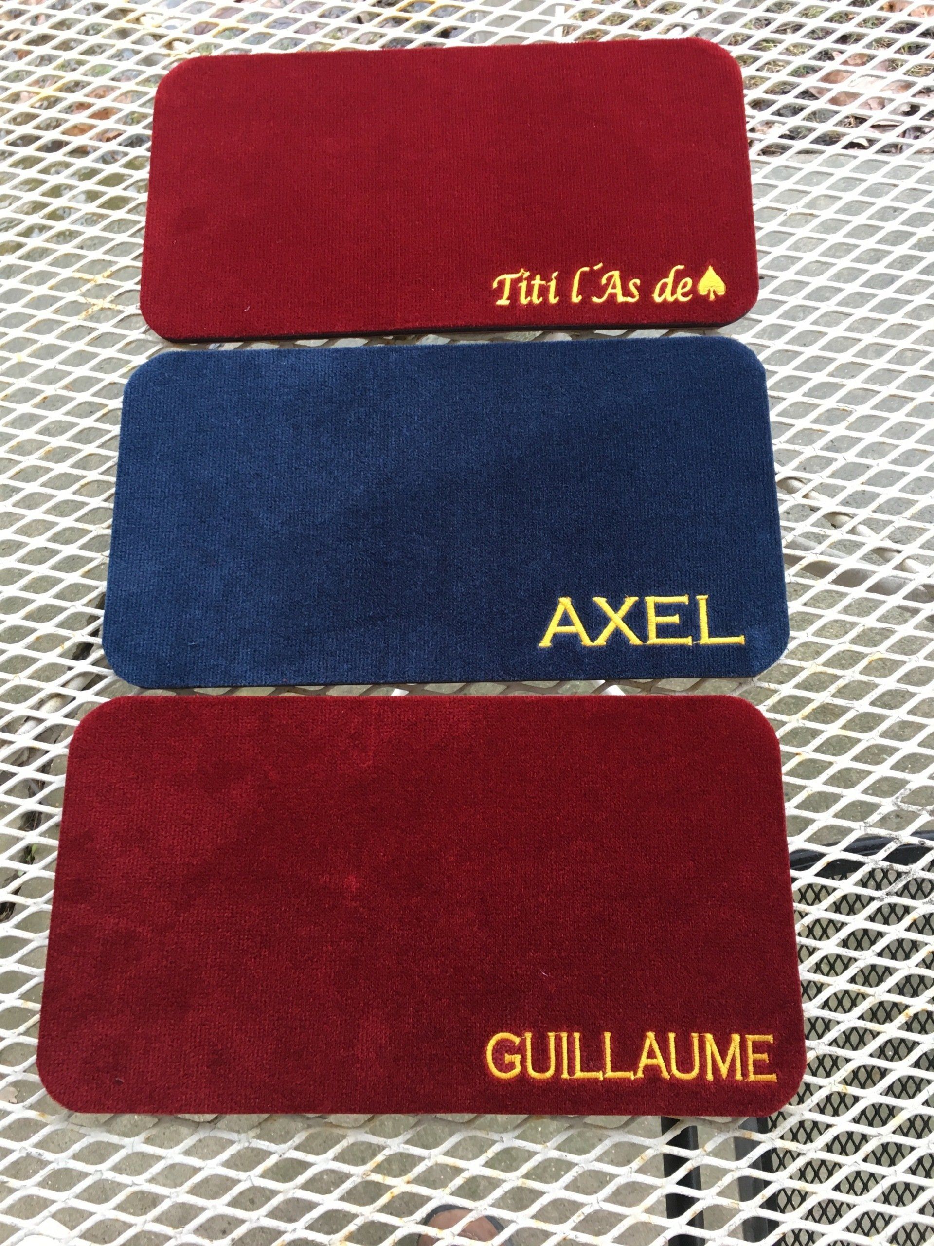 I do not embroider the mats myself, I take them to my selected professional staff.