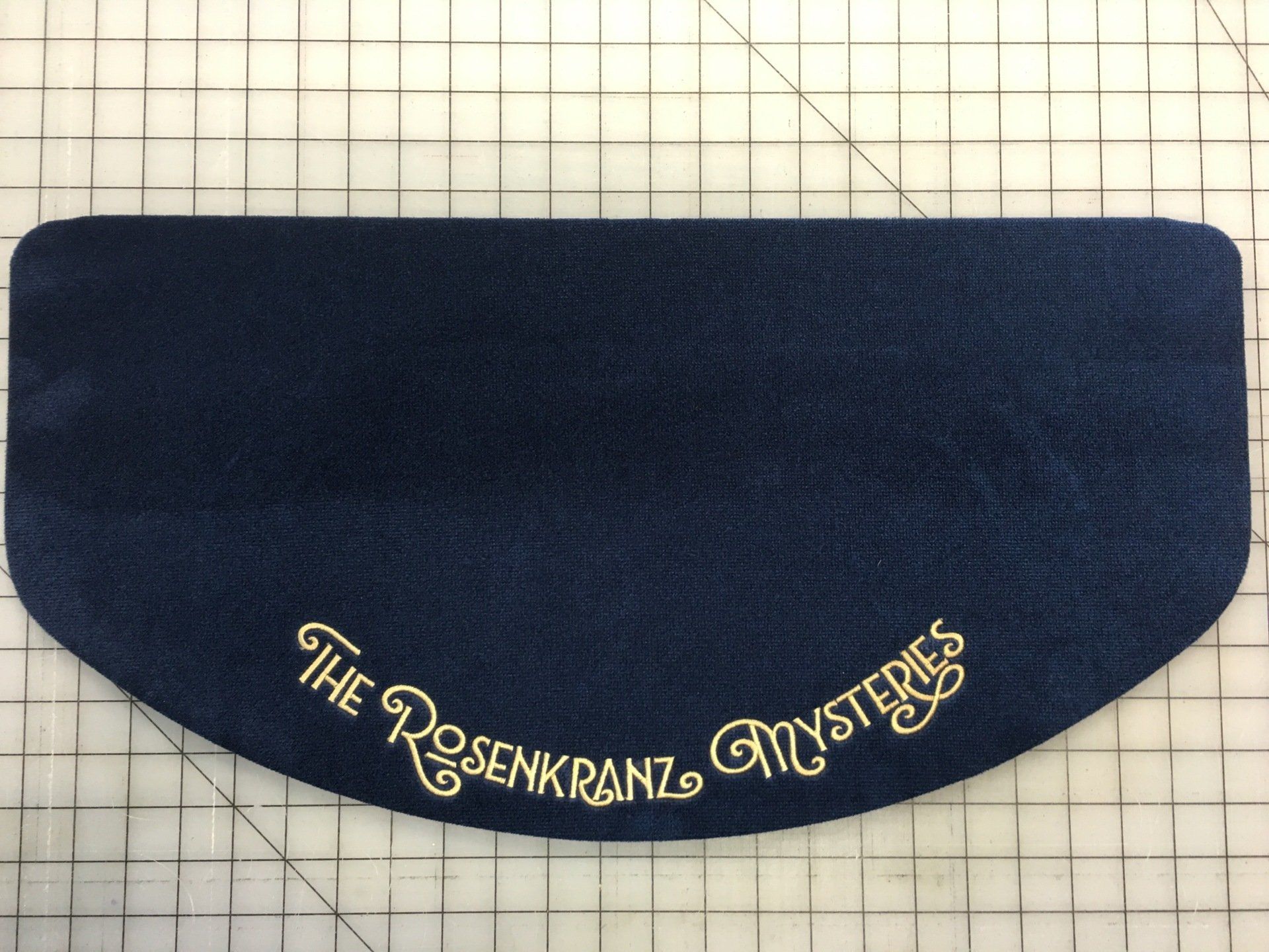 Embroidery is done in a "hooped" area. The largest "hooped area we can do is 11 inches by 16 inches. Any embroidery within this area is covered in the cost. The embroidery cost is $39.00 per embroidery area, and 99% of embroidered mats fall into this sector. Note: Some custom logo designs require larger amounts of stitches, and will incur a slightly higher fee.