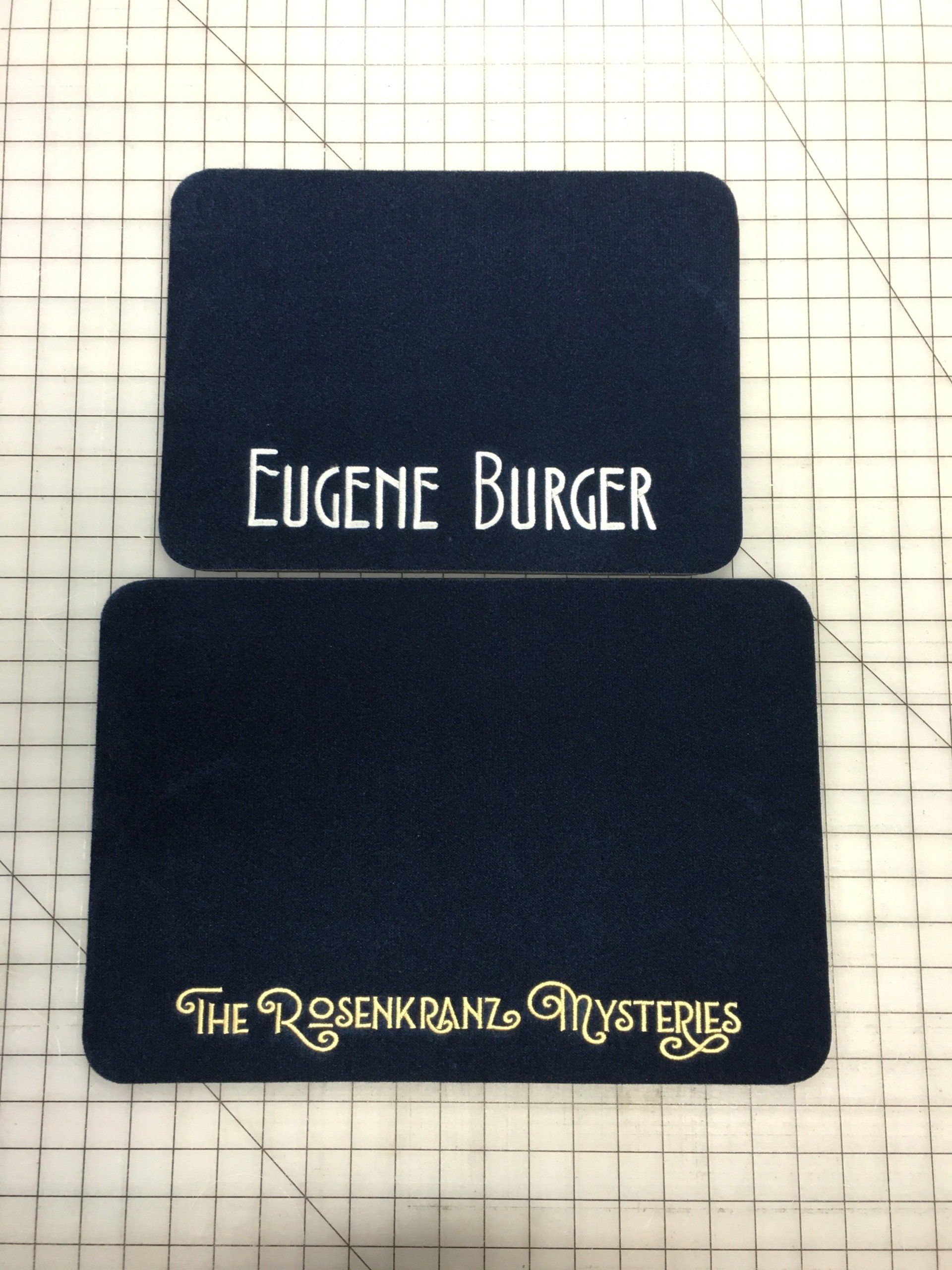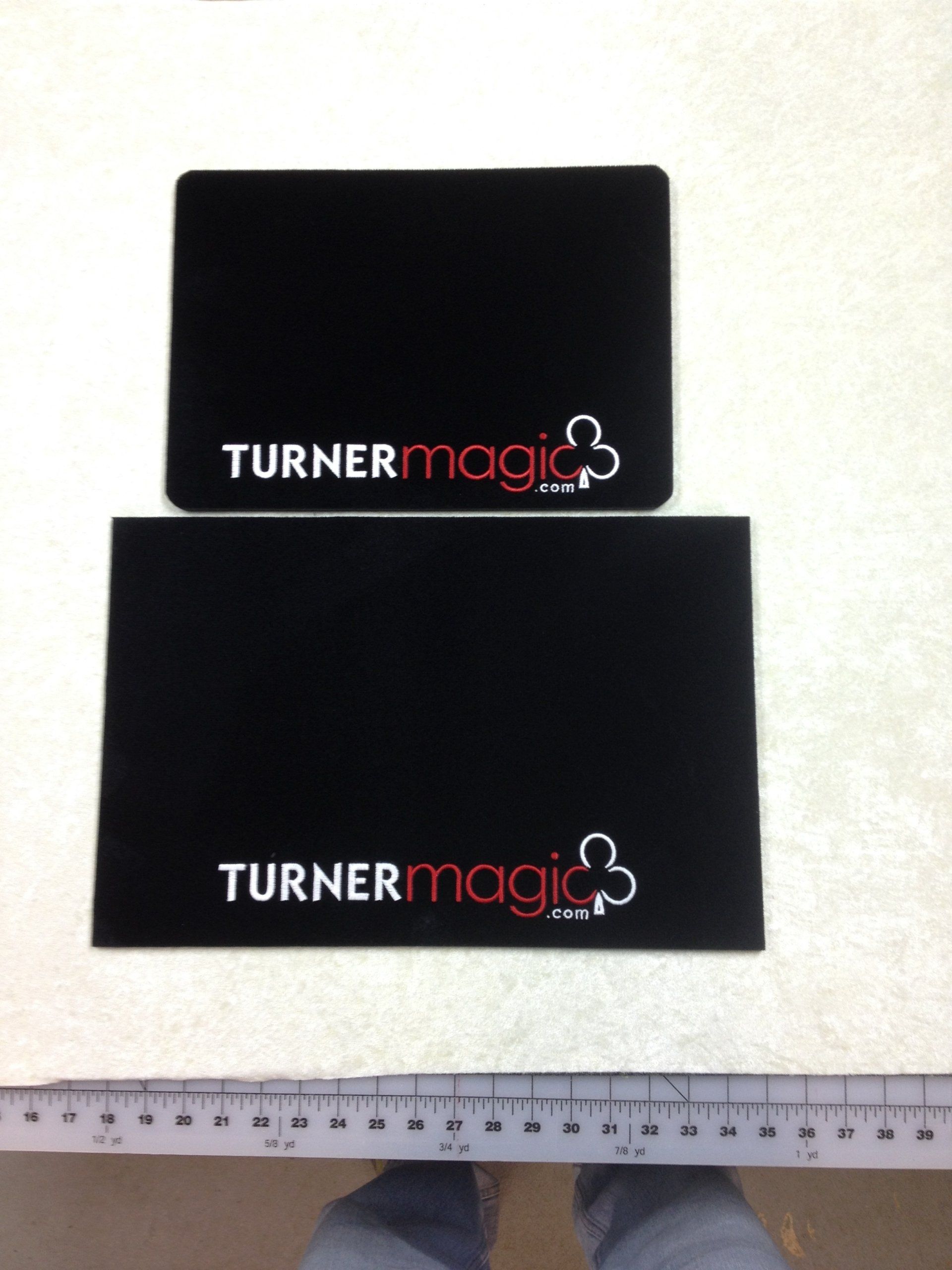Did you notice the Silver mats with the picture of Eric Jones & Ellusionist logo? This was done with dye sublimation printing. We can exactly copy your picture or logo complete with color directly to your mat. Best part is there is NO digitization fee. However this is only available on our lighter colored Spectrum material. This is an awesome way to get your art on your mat. All we need is your artwork in a jpeg, Vector, or PNG Photoshop format. Then tell us where on the mat, size of your logo / picture, and location on the mat. sounds like a lot but it isn't.